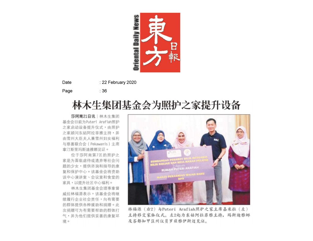 2020.02.21 China Press – LBS Foundation donates furniture to Puteri Arafiah Home