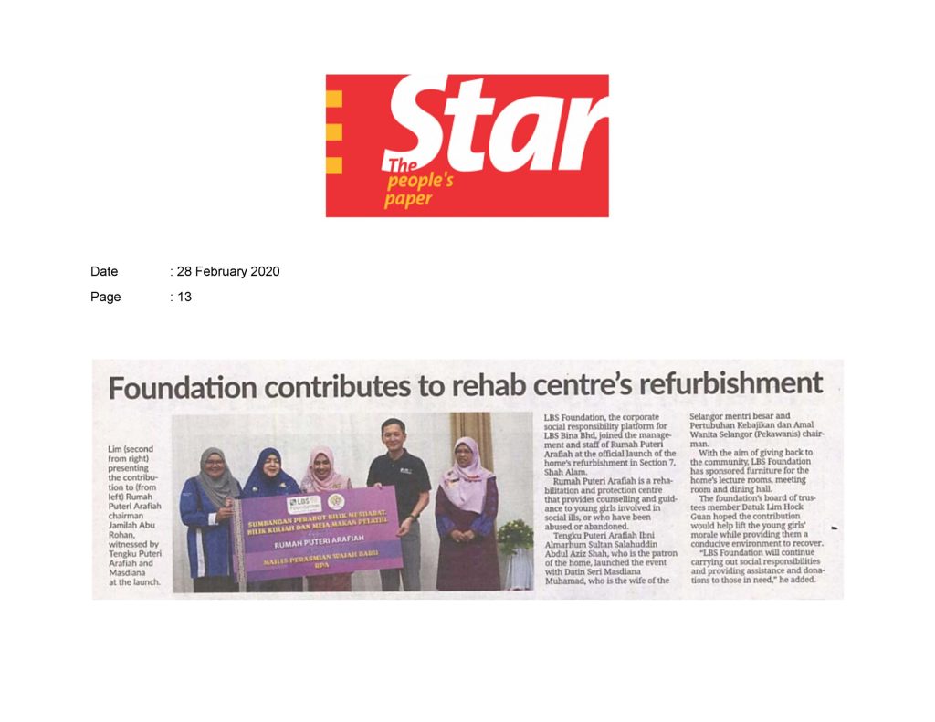 2020.02.28 The Star – Foundation contributes to rehab centre‘s refurbishment