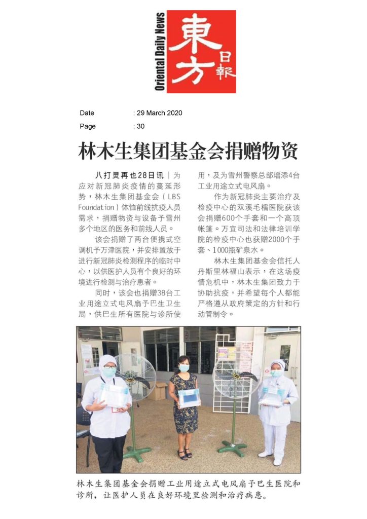 2020.03.29 Oriental Daily – LBS Foundation donates supplies