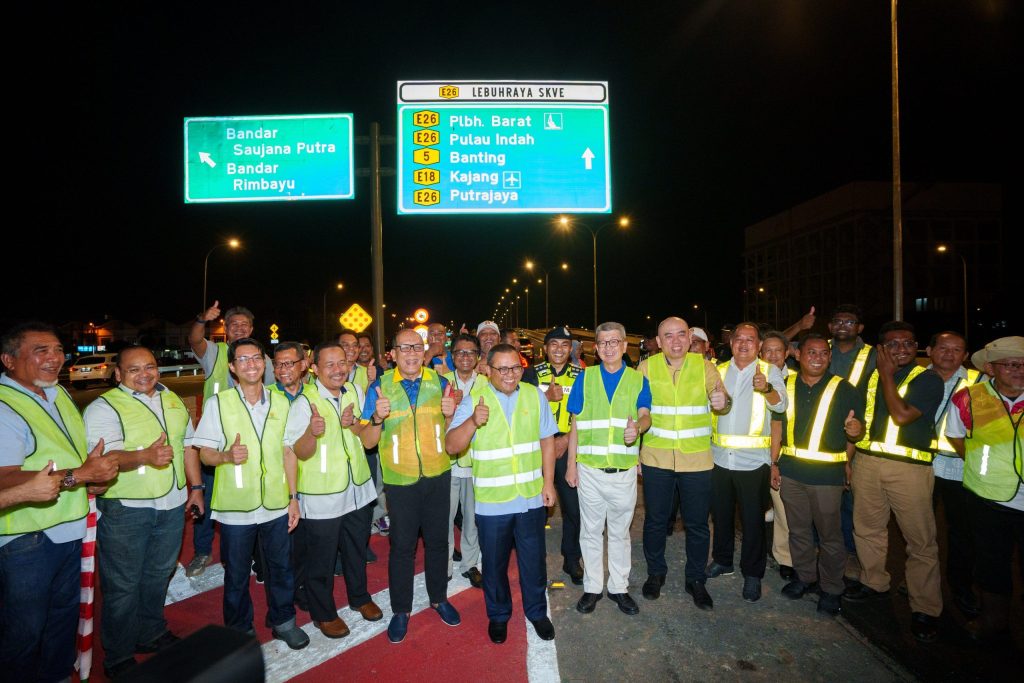 Dato’ Seri Amirudin bin Shari, Chief Minister of Selangor (center), Tan Sri Ir (Dr) Lim Hock San, LBS Group Executive Chairman (6th from right), and YM Raja Ahmad Shahrir Iskandar bin Raja Salim, CEO of Permodalan Negeri Selangor Berhad (3rd from left); alongside Selangor government officials at the BSP Flyover ‘flag-off’ ceremony, symbolizing its inauguration.
