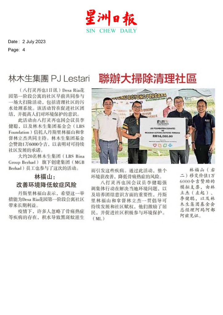 2023.07.02 Sin Chew – LBS Bina Group joins forces with PJ Lestari for community gotong-royong drive